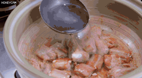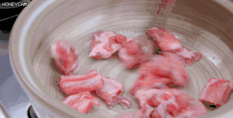 2.然后再倒入热水,加鲜藕块、姜片、葱段入锅,和排骨一起闷煮约一小时。经过煸炒后的排骨,油脂更加丰富,熬出的汤汁更加浓郁。
